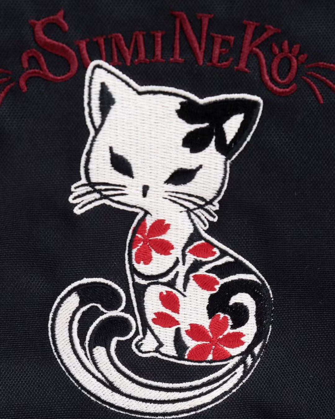 表面にはスミネコを刺繍で施し、シンプルながらも可愛い仕上がりになっています。