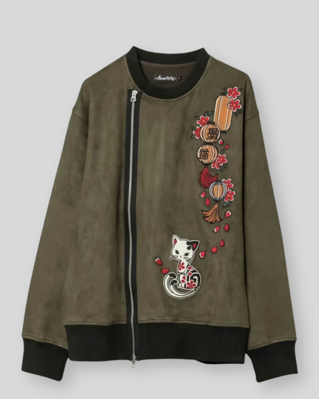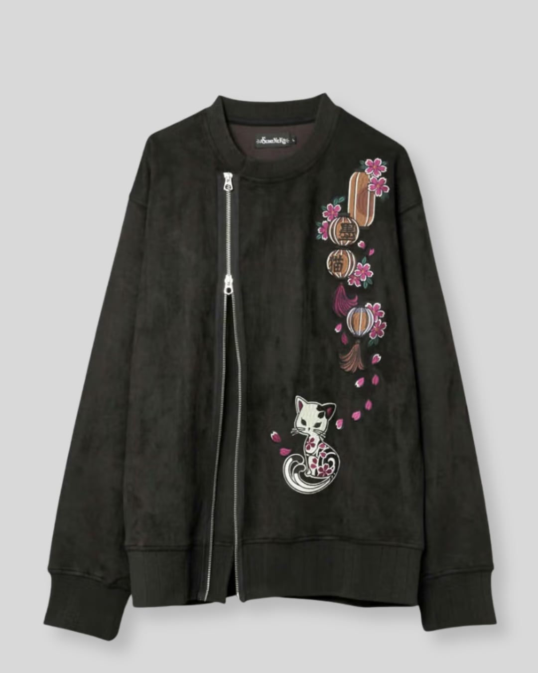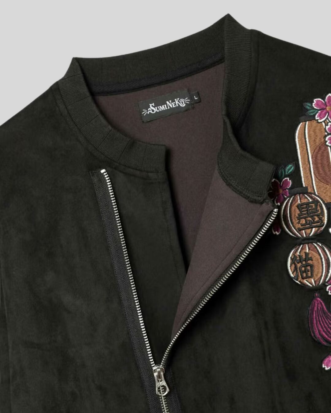 “提灯とスミネコ”総刺繍フェイクスウェードZIPジャケット≪返品・取寄対応不可≫