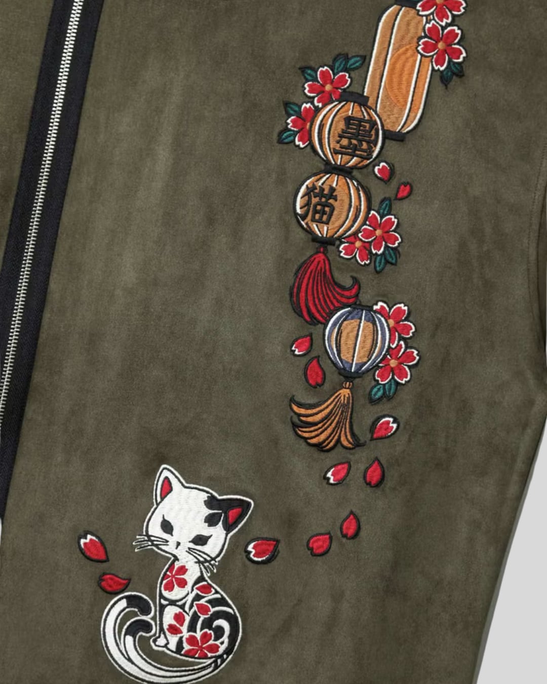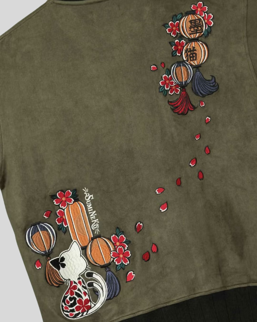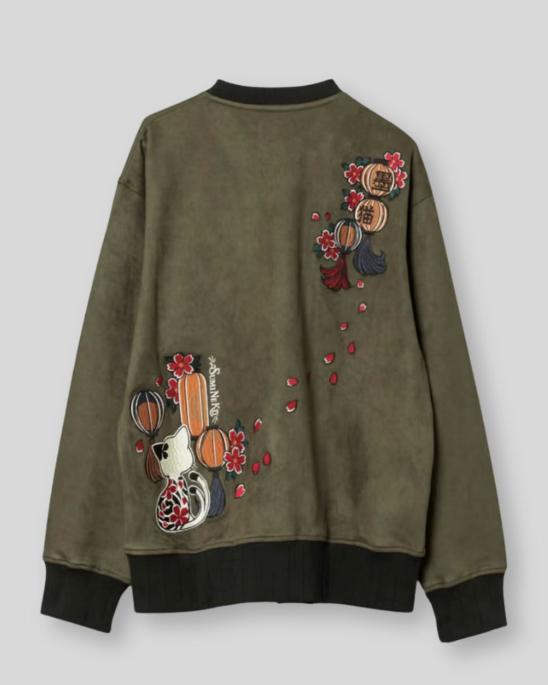 “提灯とスミネコ”総刺繍フェイクスウェードZIPジャケット≪返品・取寄対応不可≫